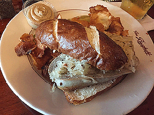 2019 TASTE: ![]() ![]() PRESENTATION: ![]() ![]() AMBIENCE: ![]() ![]() The bar's ownership has shifted within the family and the bar is now called the Adams Street Brewery, which features an on-site microbrewery that produces a tasty Dunkel. Despite other upgrades, it's 2009 all over again with oval bread but listless kraut. Pickle is a welcome addition. Clearly satisfying for the random out-of-towners that appear to be enjoying themselves. |