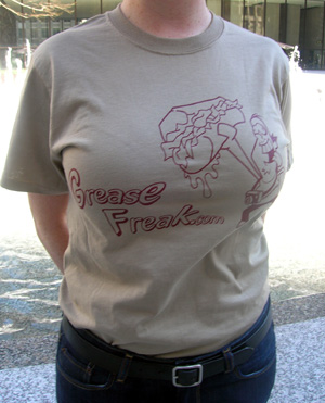 This stunning, 100 percent cotton hat features a black brim, tan body and red and black letters that profess your love of all things greasey. One size fits all. Only $12.95. Free shipping.